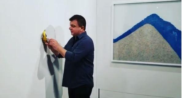 Der italienische künstler maurizio cattelan hat auf der art basel in miami beach einer großen kunstverkaufsmesse eine banane ausgestellt.